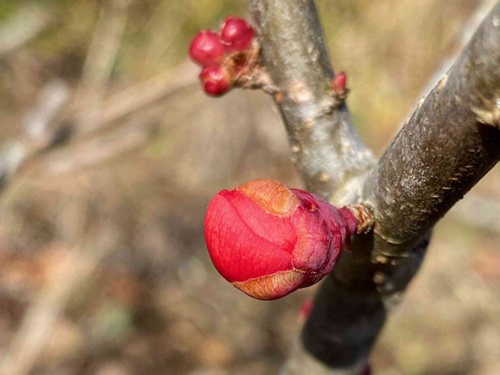 真っ赤なツボミが膨らんで、春の予感が✨🎶