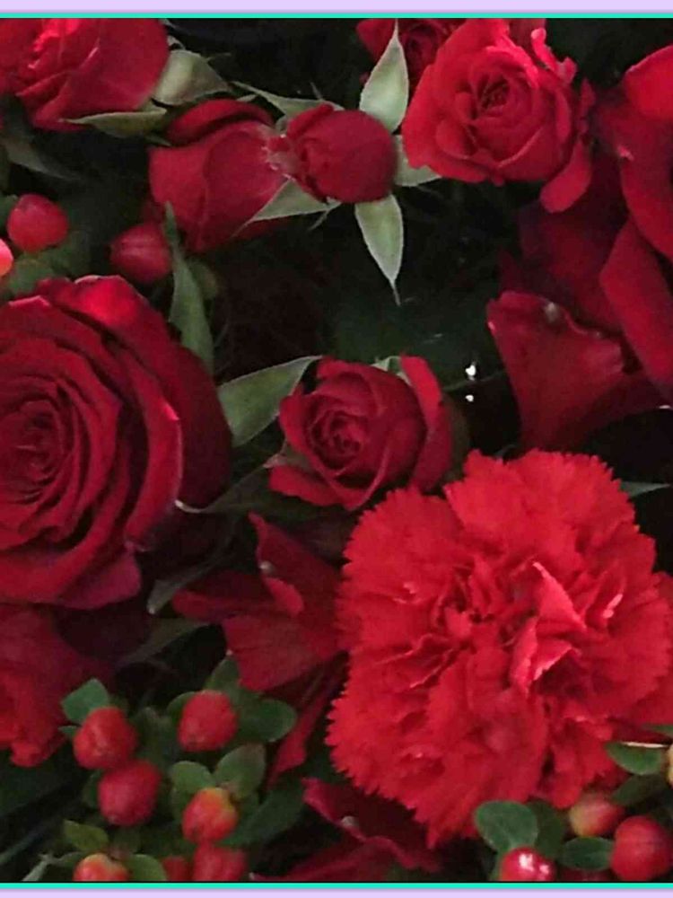 バラの赤、カーネーションの赤と仲よく♪