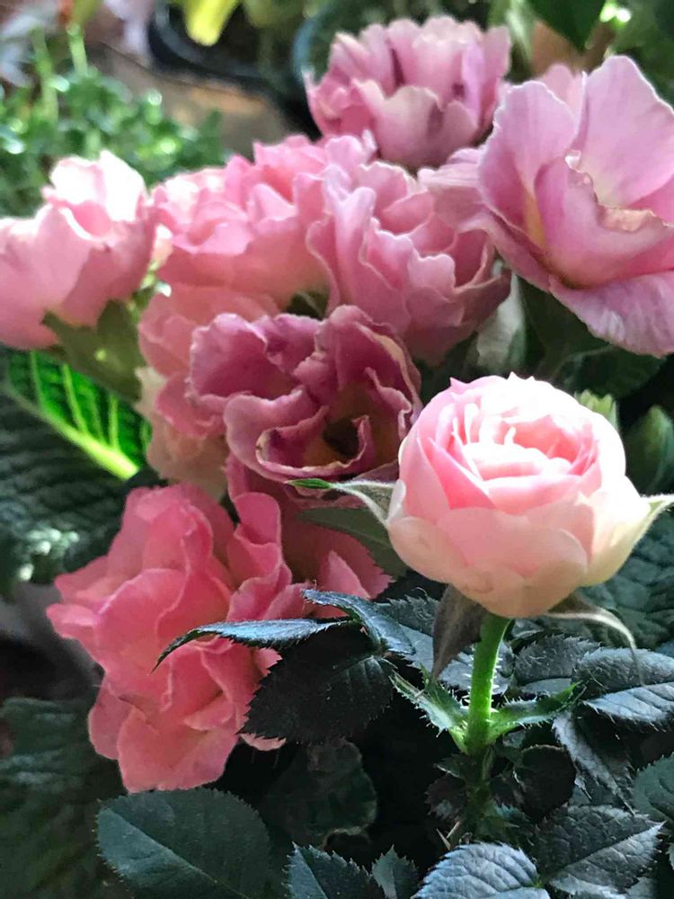にてる😍🤗 ピンクのミニ薔薇の蕾とピンクのプリムラ´ジュリアン╮(。→‿Ő。)💕