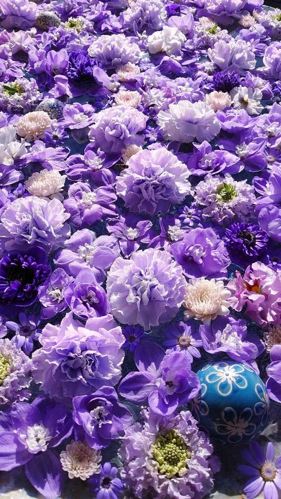 今日の花手水は大好きな薄紫色でした😍💜💙✨