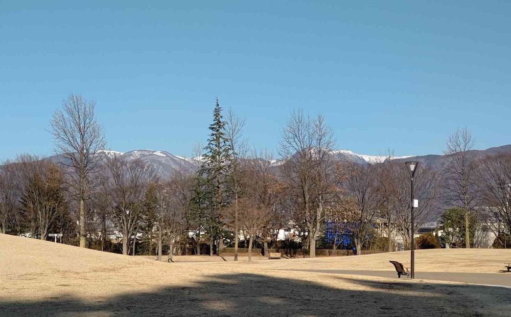 遠くの山々には雪が見えますね。美ヶ原高原かな?