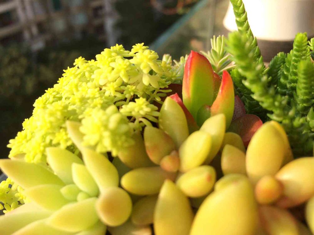 火祭りのレッドはもう消える😭周りの多肉は高い過ぎて、ちょっと陽光不足かなぁ❓🤔