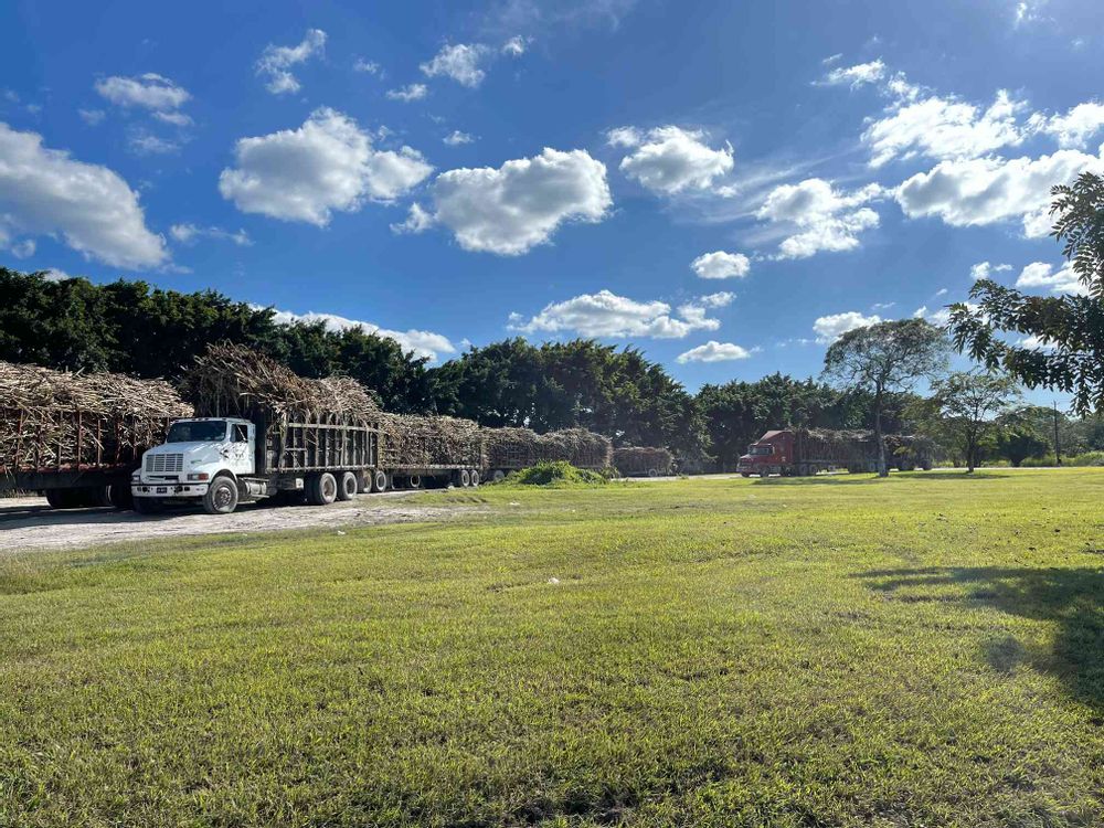 サトウキビのトラックが🚚連なっています。あと3箇所ぐらい待機所があり沢山トラックが列をなしています。