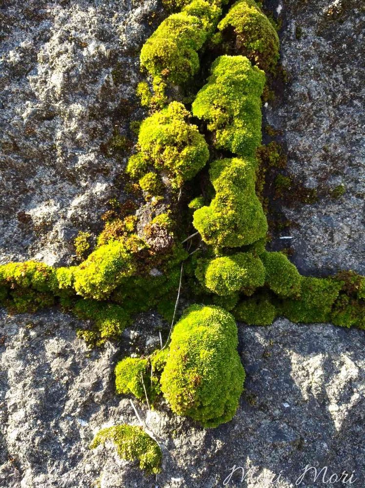 石垣の隙間にモコモコの苔🌿