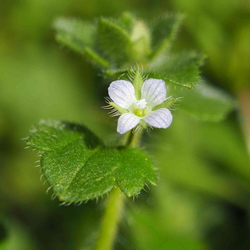 オオイヌノフグリの傍でまとまって咲いていました。日陰の午前は小さな花をさらにすぼめていましたが、午後下山時には日が当たって開花していました。ガクの毛が特徴的です☺🥰