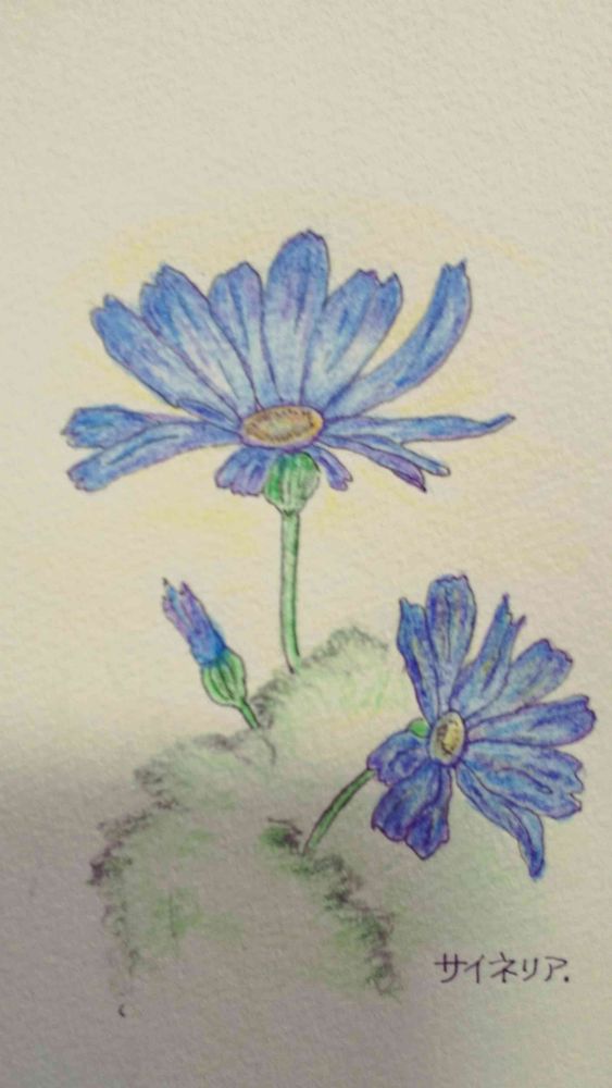 ちぃままさんのサイネリア,花のある暮らし,色鉛筆画の投稿画像