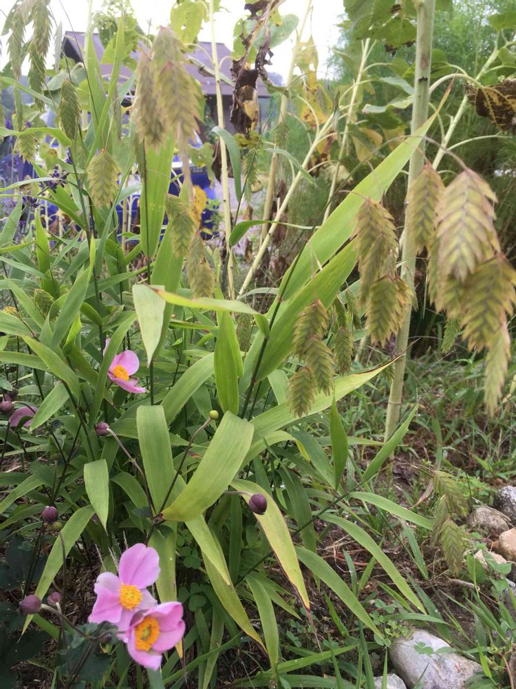 シュウメイギクがたくさん蕾を付けていますが、その隣で風にゆらゆらと揺らめいているかわいい奴