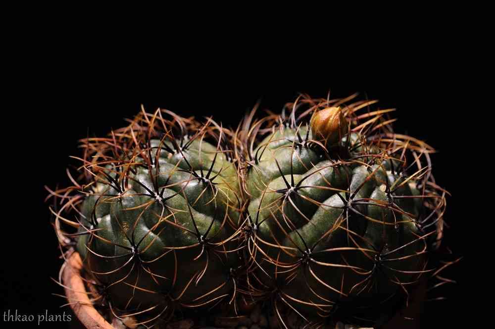 丸いボディーに沿う様に内側へ曲がった黄色っぽい刺を持つ。