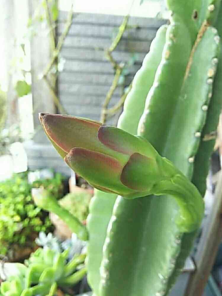 背丈が120cmくらいの柱サボテンもようやく今年は花が見れそうです‼