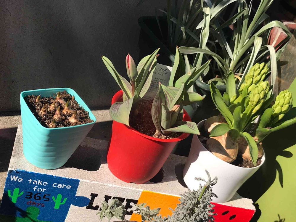 ムスカリも背が低いし、合うかな〜と思って。花が咲くのが楽しみです。