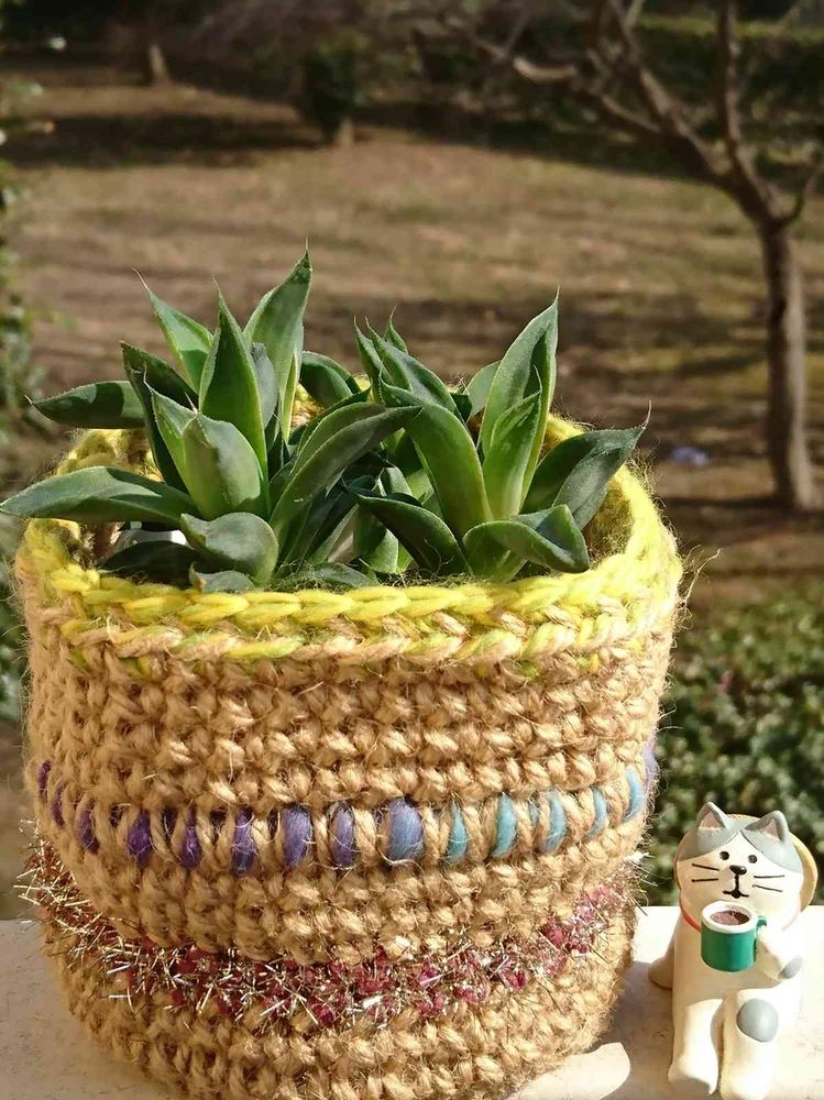 お花も多肉もそして手作り鉢カバーがいつもとても素敵❣️