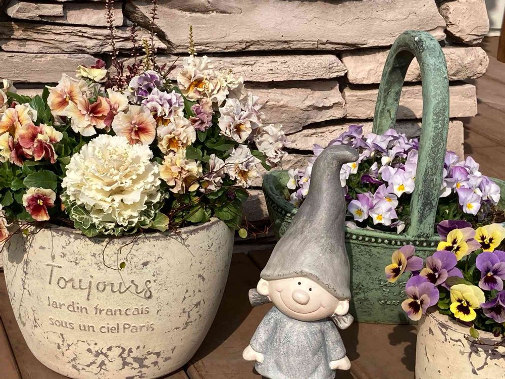 優しい色合いの可愛い寄せ植えですね❣️ビオラ に負けず、一際存在感のあるのは葉牡丹なのですね〜⁉️👀
