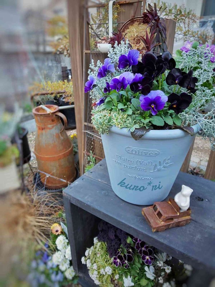 わぁ❤️素敵な色の組み合わせの寄せ植えですね(*^▽^)/★*☆♪🖤💜