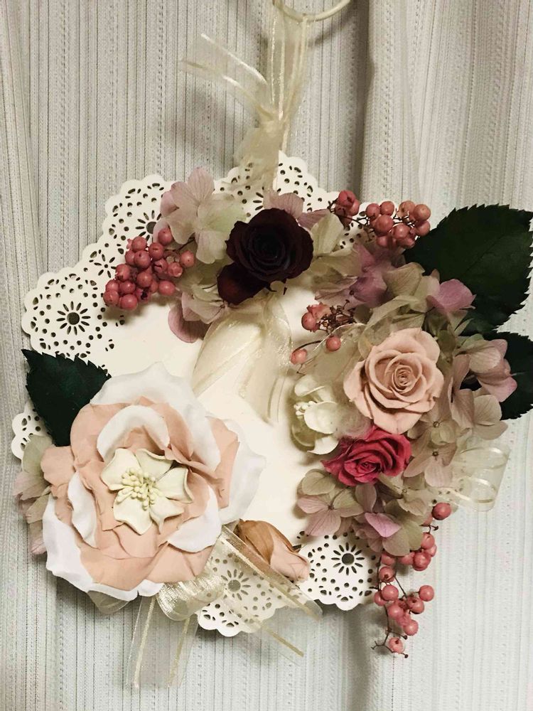 ただ私はコサージュとして使う事もないので木製レースボードに貼り付けアレンジ💗