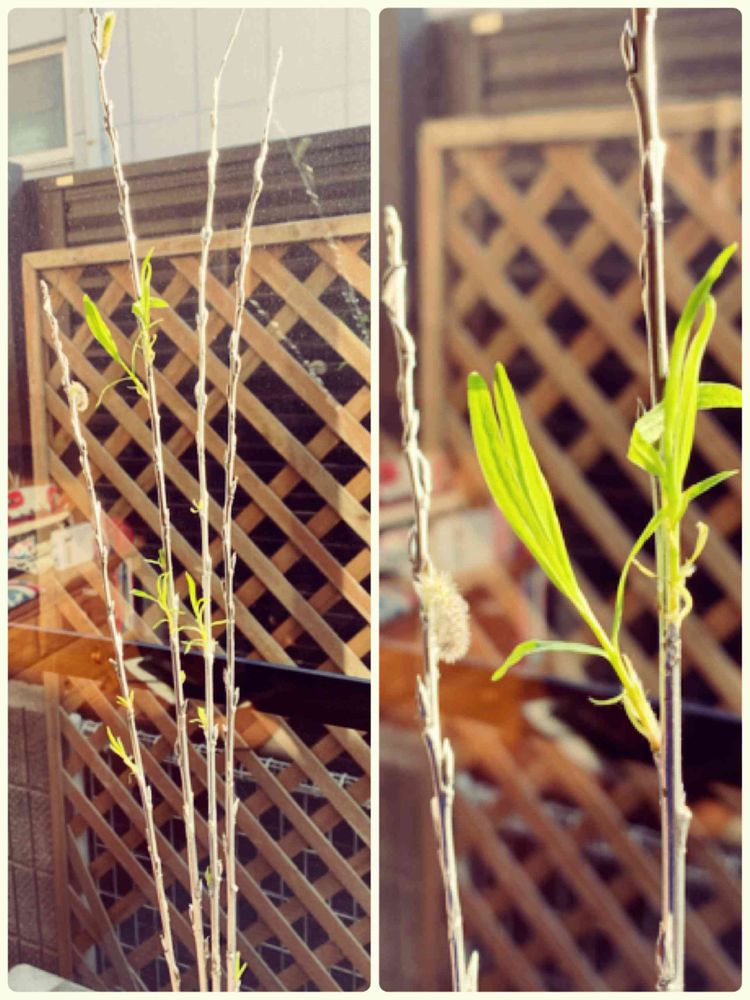 ずーっと水に挿しておいたら葉っぱが出てきました😃
