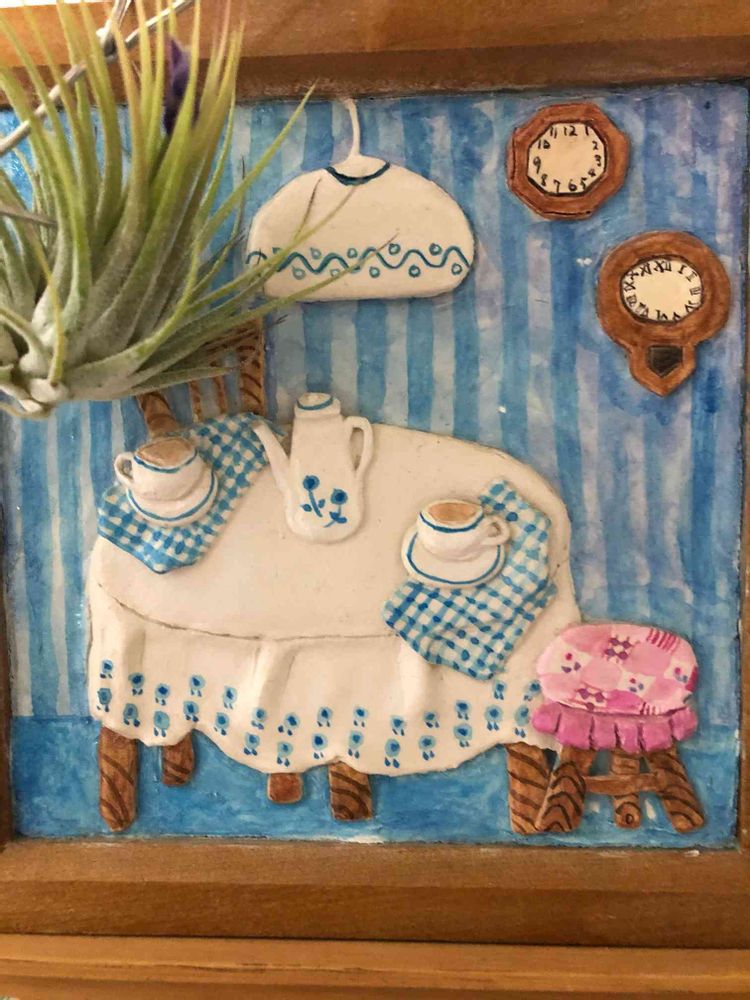 壁掛けのクラフト粘土、、私もやりましたよ、同じようなキッチンを壁掛けで作りました🙏😅