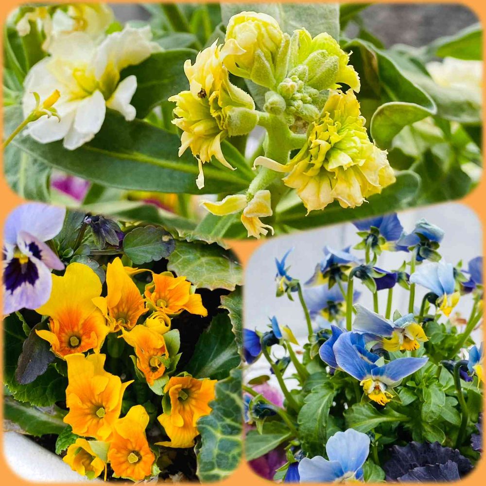 鳥被害にあったのは一つはバンキングポットで黄色のプリムラジュリアンは鉢が地面に着いているわけでもないのですが、鳥も器用に鉢の端っこに止まって花びらを食べたみたいです🤔⁉️