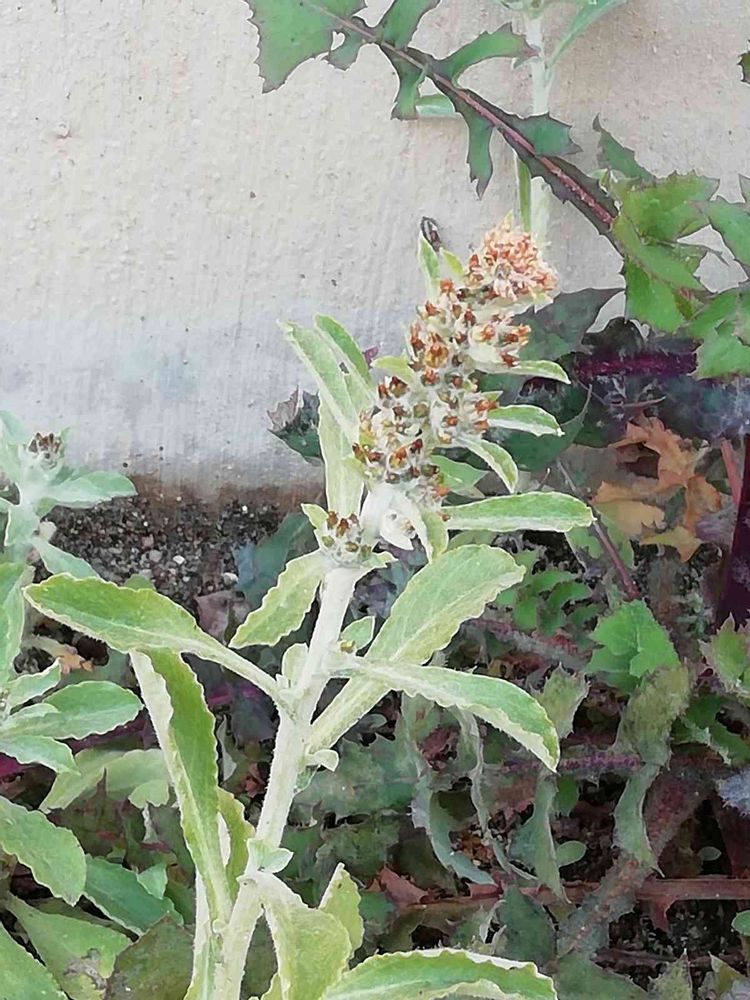 上部の葉腋に淡褐色の頭状花を穂状につける