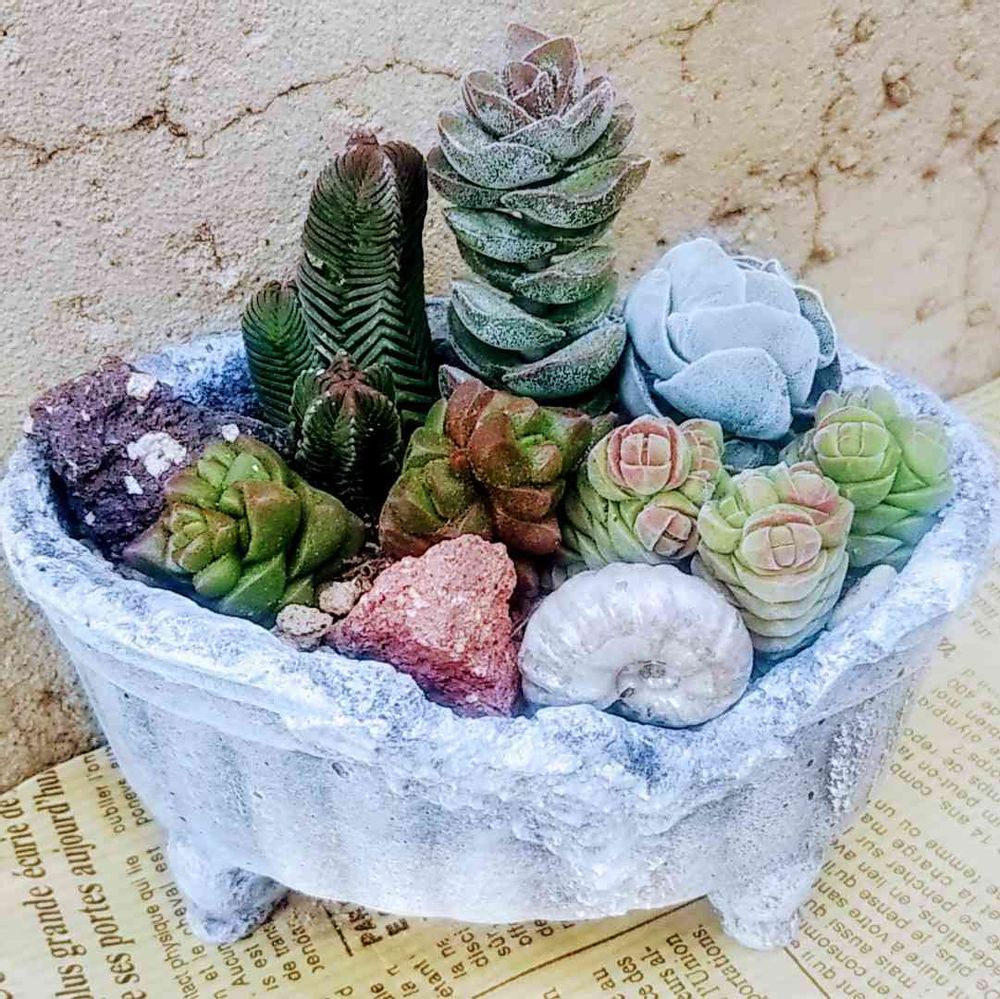 栽培が難しいとされている、小型冬型クラッスラを、シマムラ園芸ゆるぅ~っとマーケットで購入した、まっきゅ~さんのモルタル鉢に、寄せてみました!