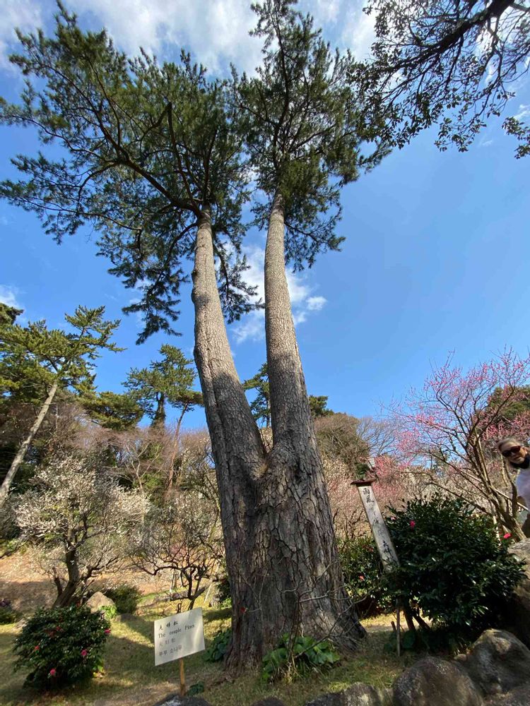 他の神社仏閣でたまに見かける夫婦杉とか夫婦なんちゃらっていう木は、2本で寄り添っているのに、珍しいよ!