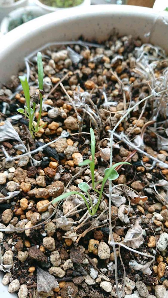 種もばら蒔いておいた鉢ですが、昨年より寂しいので、エリゲロンやらシレネやら、適当に挿しています❗