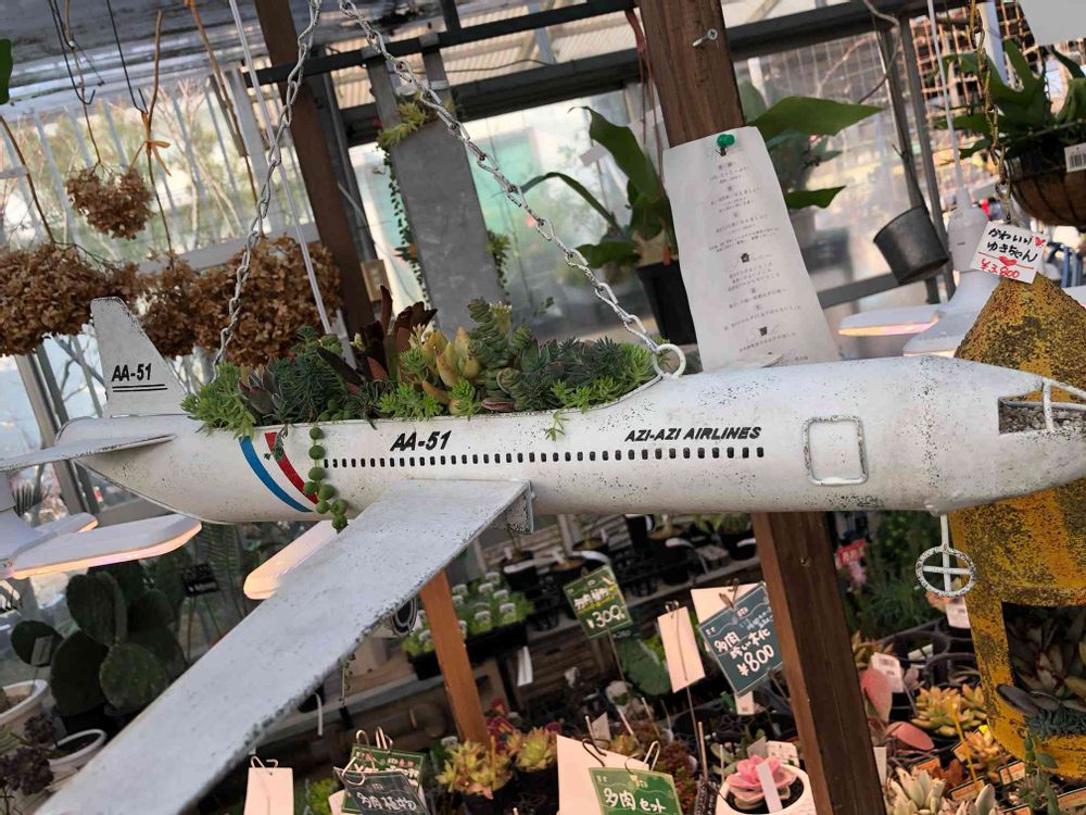 多肉ちゃんが、飛行機に乗って飛んでる〜✈️💨これは凄い鉢だね🤭🤭😆🎶💕