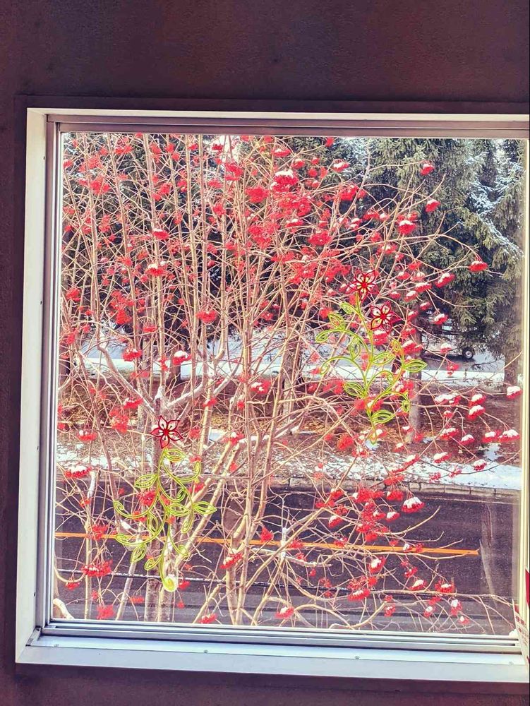 家具屋さんの階段の窓から見えたナナカマド💕赤い実がツヤツヤでうっすら雪がかかってるのが可愛かったなぁ🥰