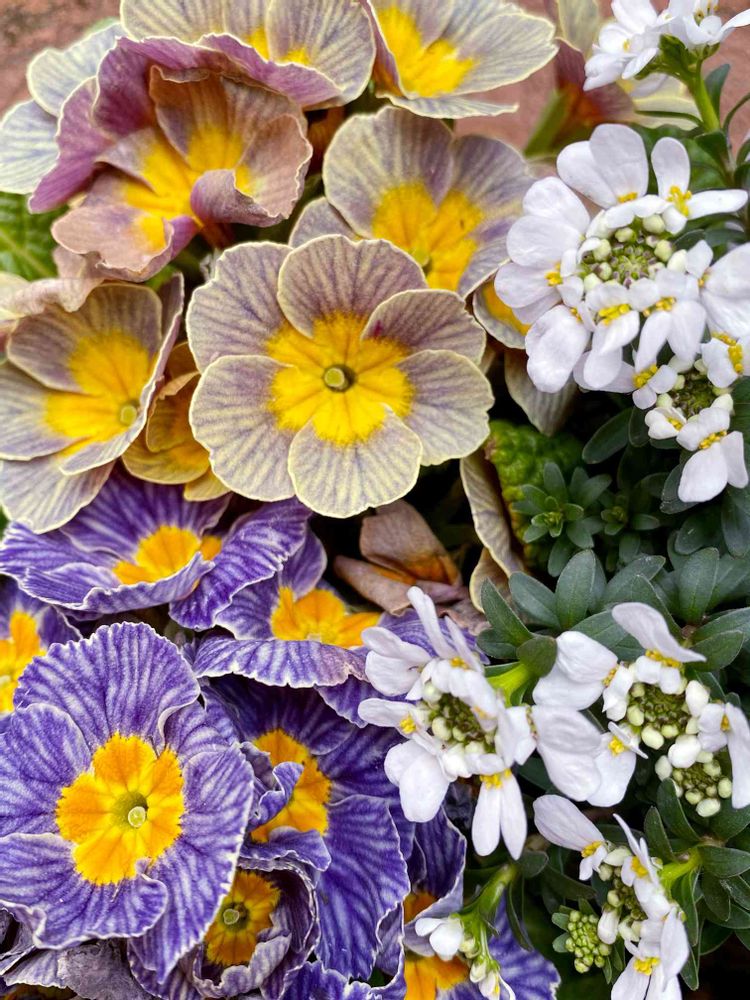 ジュリアンの種類が豊富で、あの子もこの子も…となってしまいますが、この子達はうちのカラーと少し違ってシックなので地植えではなく、鉢に寄せ植えにチャレンジしました😅