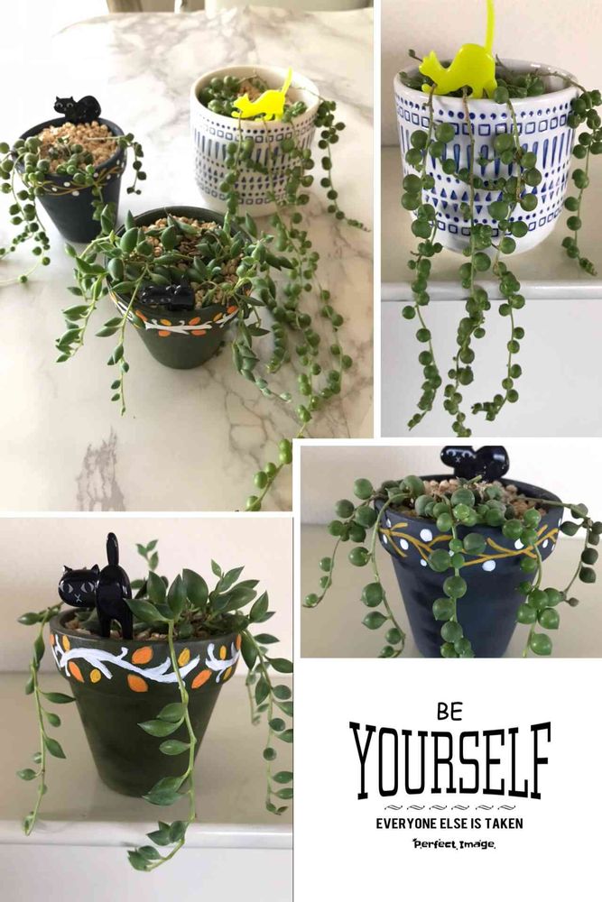 普段は、籠にIN🧺してハンギングしてますが、鉢にチョットペイントしたので、並べてみました😻