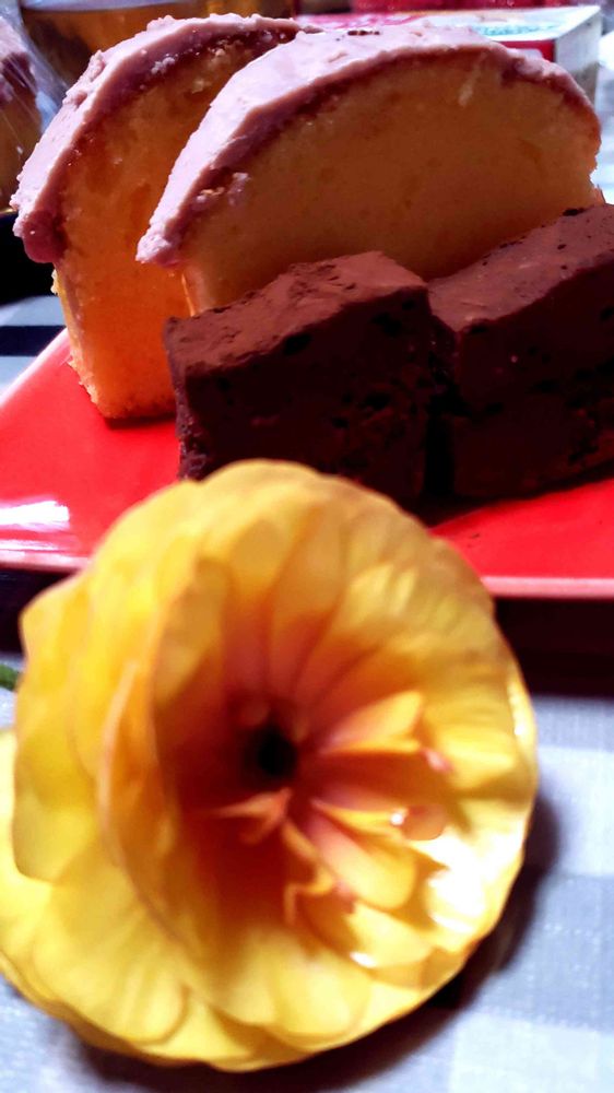 お菓子も、コロナ禍で、学びました。チョコテリーヌと、パウンドケーキに、ルビーチョコレートを、かけてみました。基本、昼は、花やって、夜は、お菓子をつくるよーになりました。