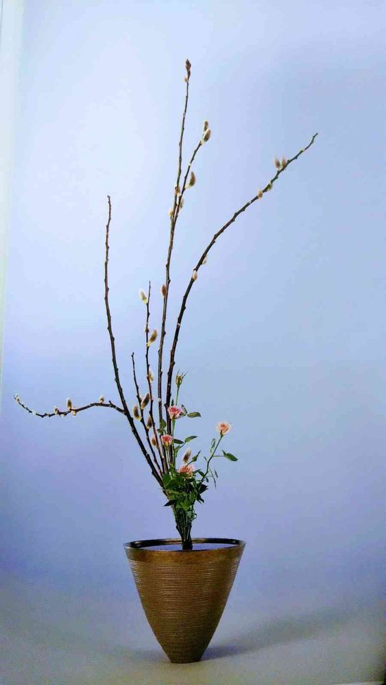猫柳は枝の交差を避け、一本一本をのびのびと空間に働かせます。