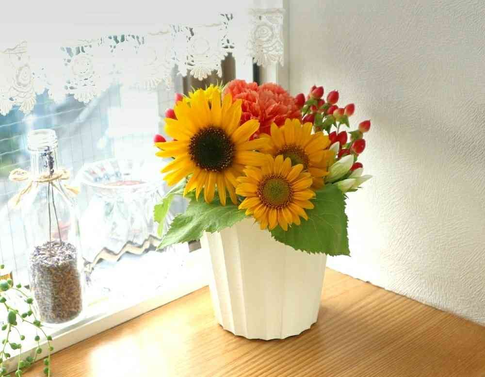 ひまわりさんもカーネーションさんもヒペリカムさんの実も全てが可愛らしいです(´,,•ω•,,)♡︎