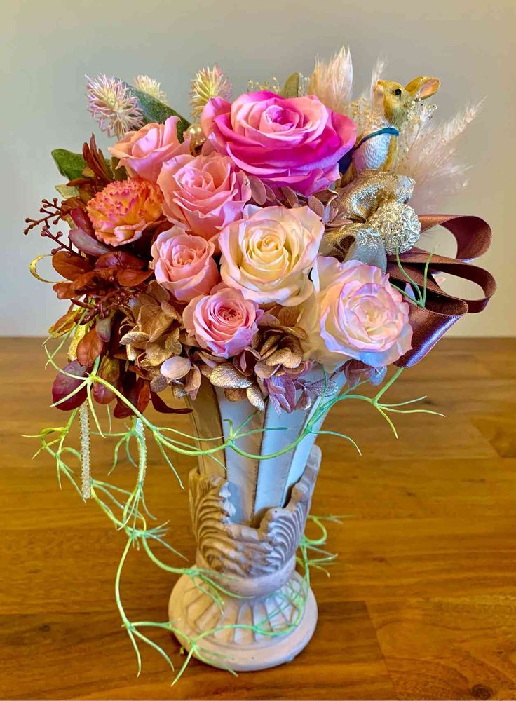 春が待ち遠しい、この寒い時期、素敵なアレンジメントですね〜。