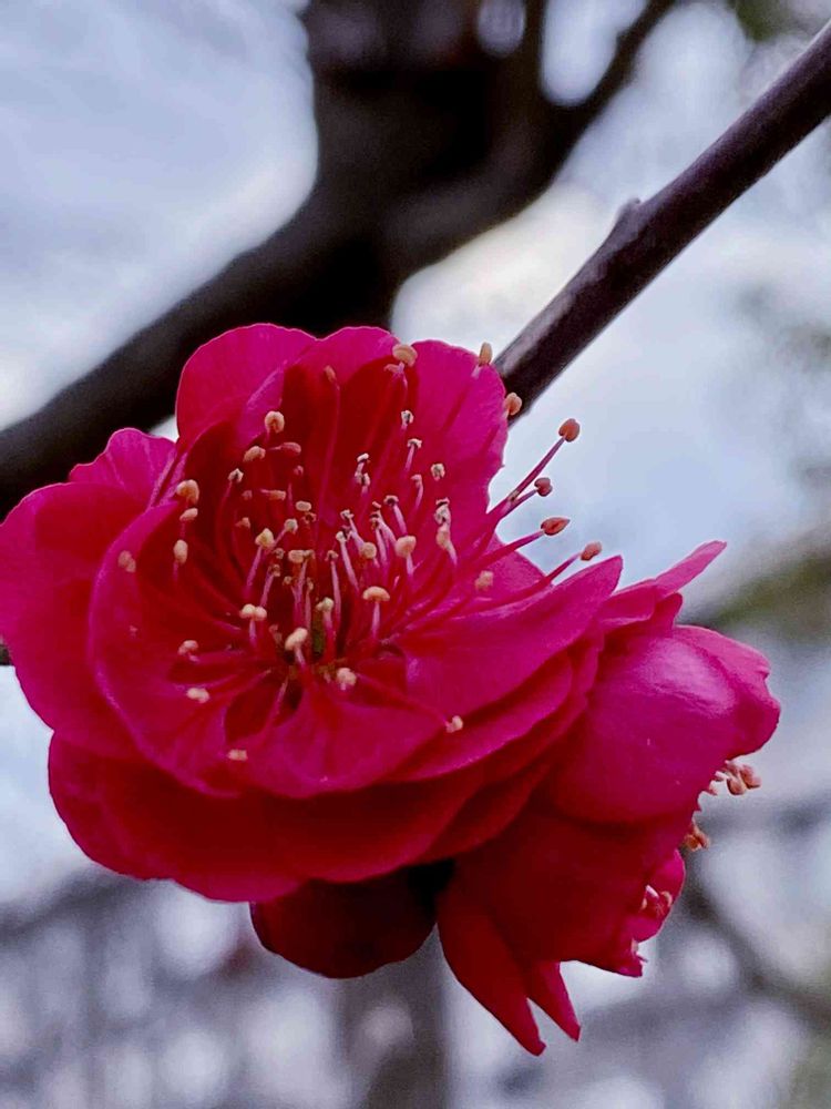 風に揺れる紅梅