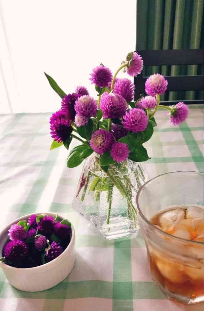可愛らしい千日紅💞でテーブルが明るくなっていいですね🎶