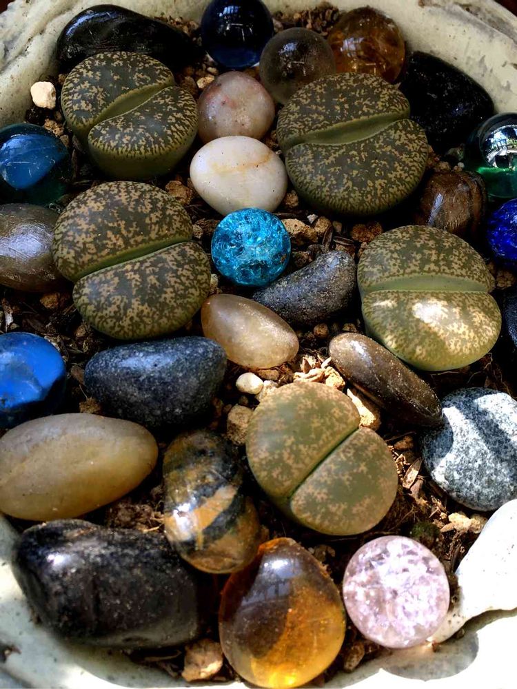 たくさんの石の中に1個だけリトープスでも楽しいですね꒰*´∀`*꒱