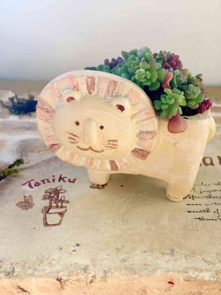 さん、️🦁ライオンさん鉢、息子からのプレゼント🎁でね、セメントだったので色を塗ったのですよ✨ありがとうございます✨🥰