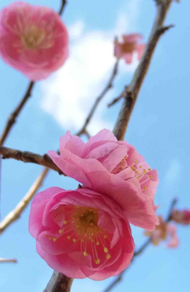 小さな梅の木に花がつき、ほっこりした気分になりました。