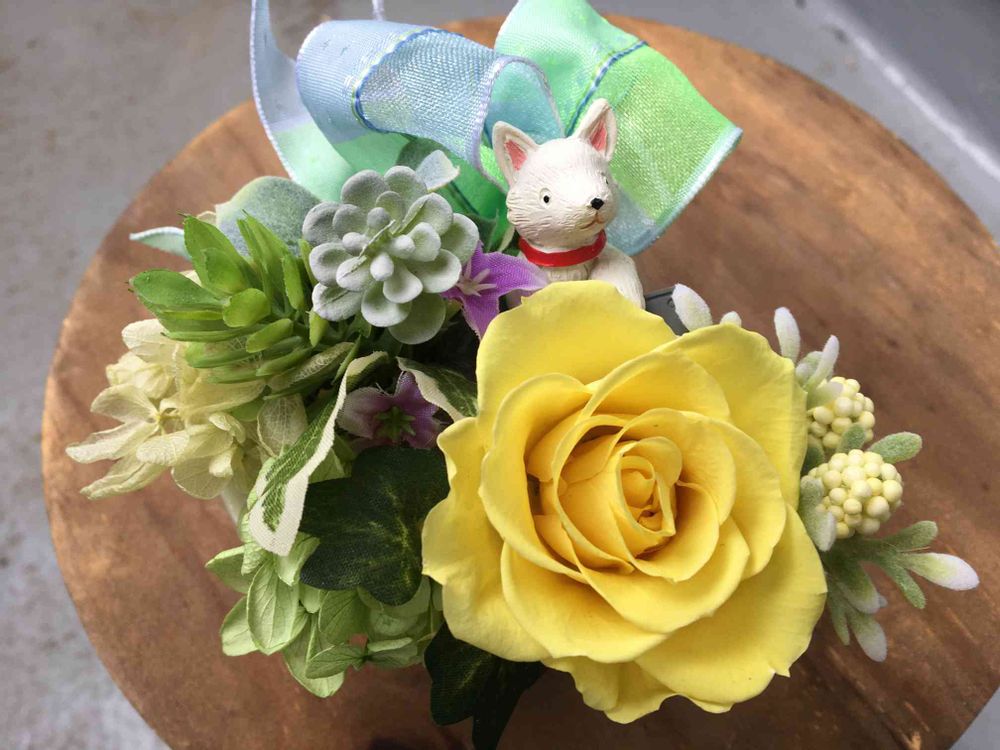 元気が出るように黄色のプリザーブドフラワーアレンジ。