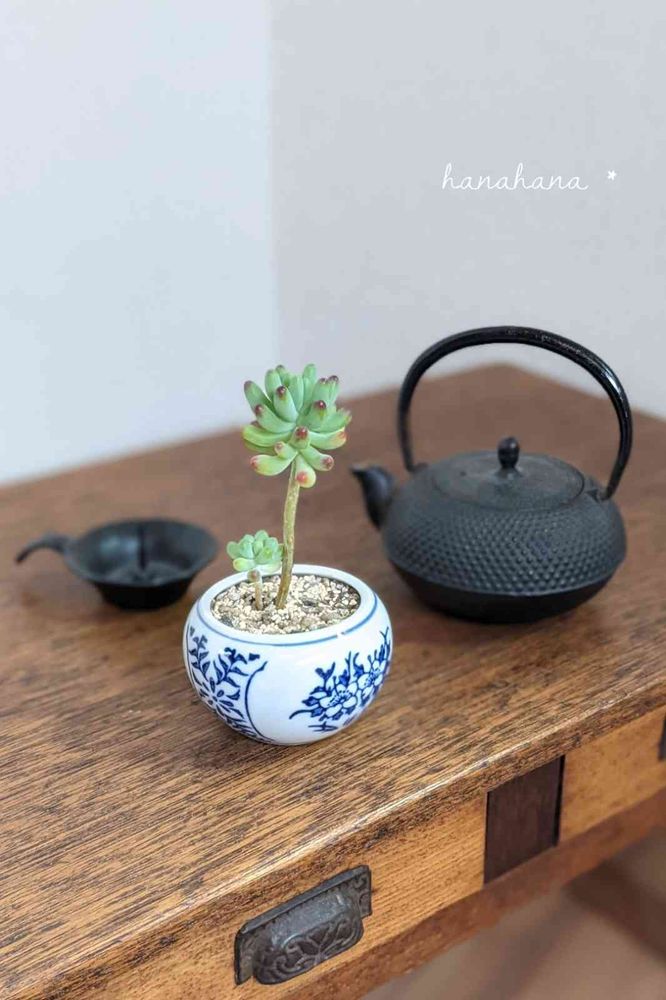 わあ、素敵なお父様ですね。鉢や盆栽や植物がお好きなんですね✨さすがhanahanaさんのお父様。多肉と鉢がすごく合ってますね💛鉄瓶もいい感じ。
