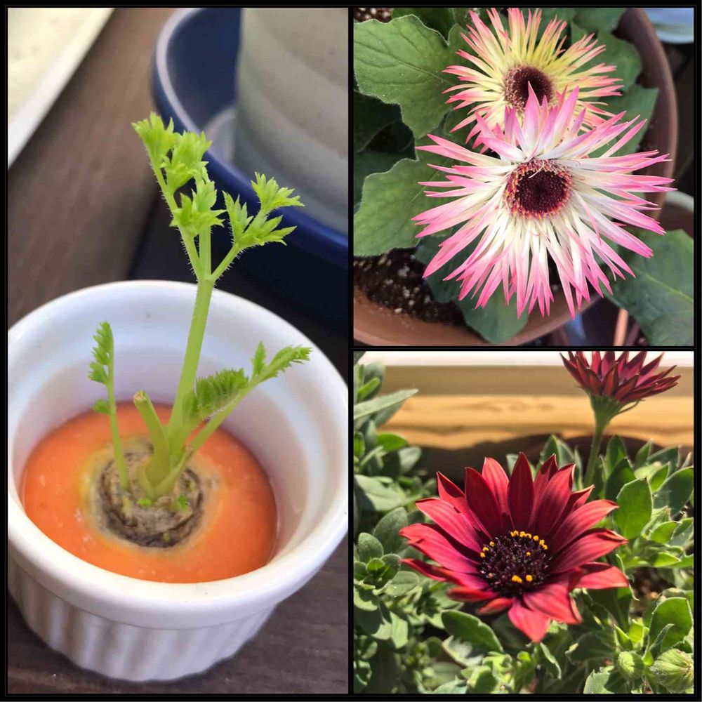 熊之助さんのバルコニー/ベランダ,ミニガーベラ,にんじんのヘタの投稿画像
