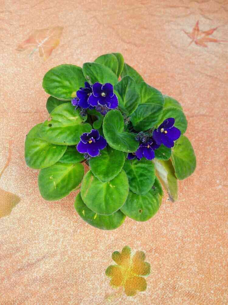 セントポーリアの下の風呂敷は、おっちゃんの祖父の染め物工場で、自分で染めた風呂敷です。