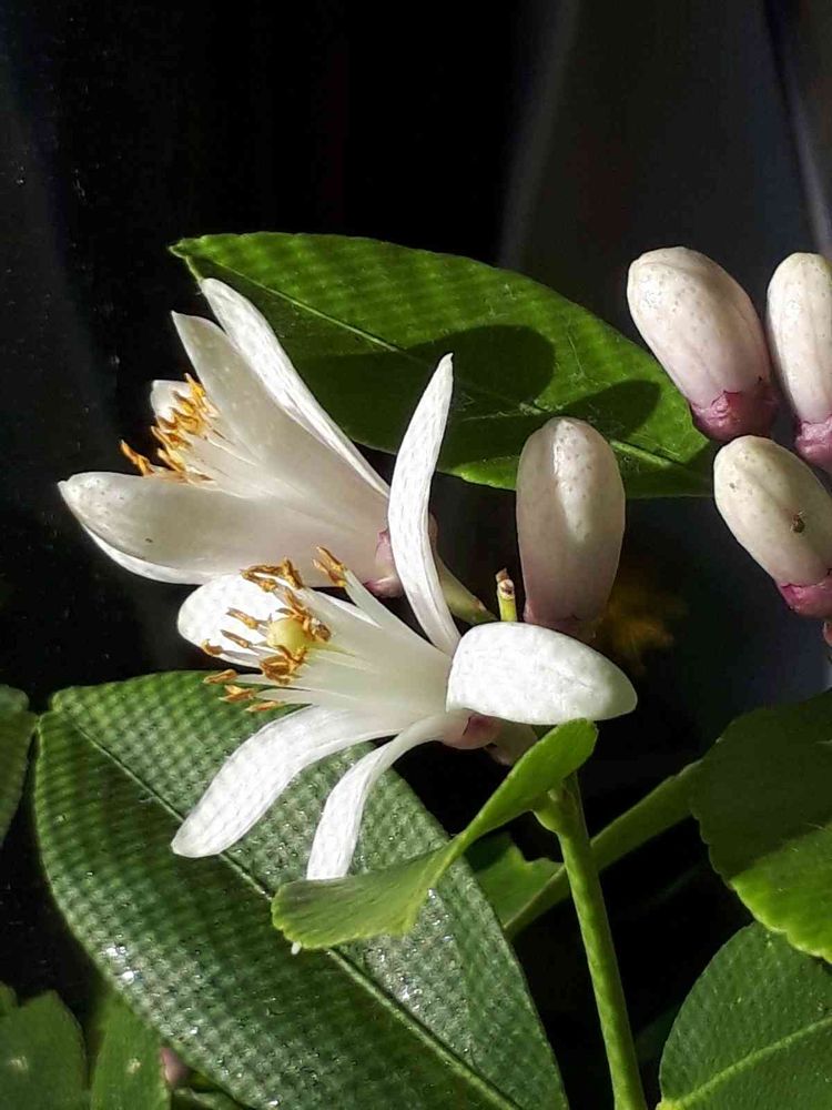 外では寒いので今のところは家の中、窓辺に置いてます🍋だから花が早いのかな😅もう、小さな実になってきています🙌