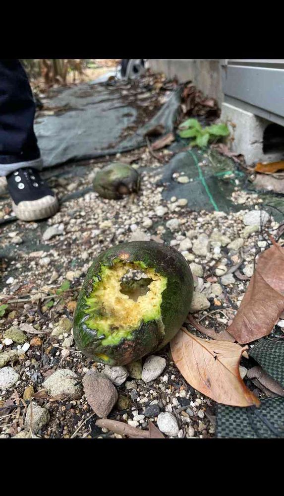 緑の葉にずっと緑のままの品種。見落とし収穫し忘れた果実が野鳥に種だけ食べられて落下しました!