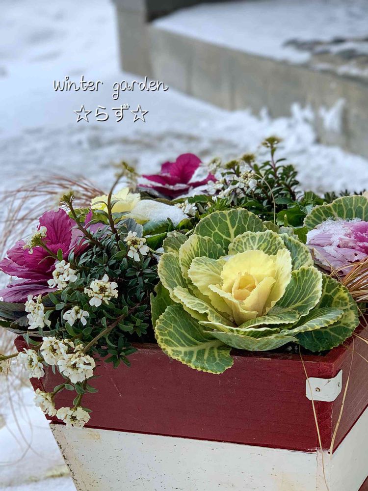 雪の背景に、ピッタリ映える寄せ植えだね💖