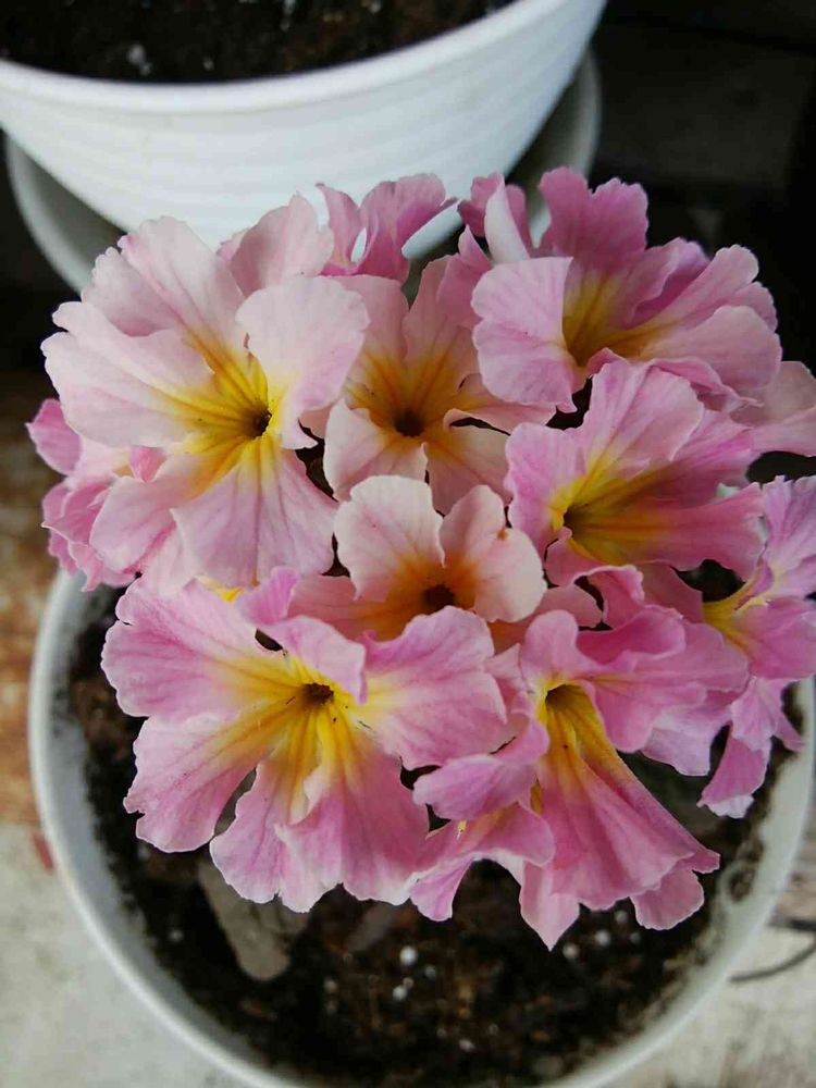 鉢数少ないので、玄関へ入れるの事は可能だったと思います💦可愛いそうな事しました。まだ、寒いですが、このプリムラと、ジュリアン薔薇咲きを迎えました。薔薇咲きは寒波で枯れたので再度お迎えしました。枯れないように気をつけます🙋
