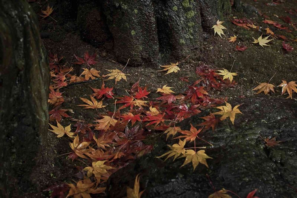 雨上がり、散ってなお綺麗なモミジ落葉。