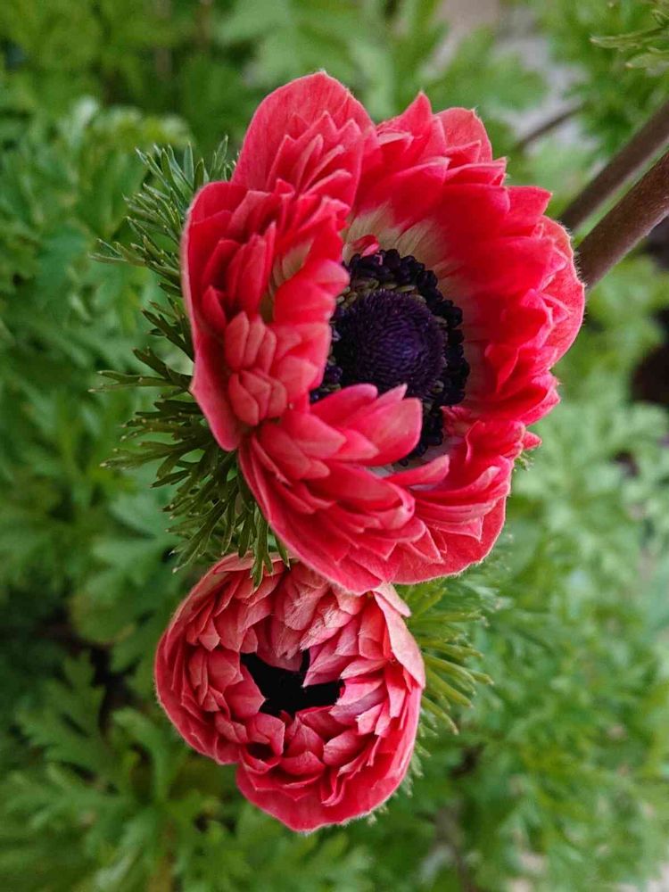 真っ赤なアネモネ、八重咲きですね❤️❤️❤️