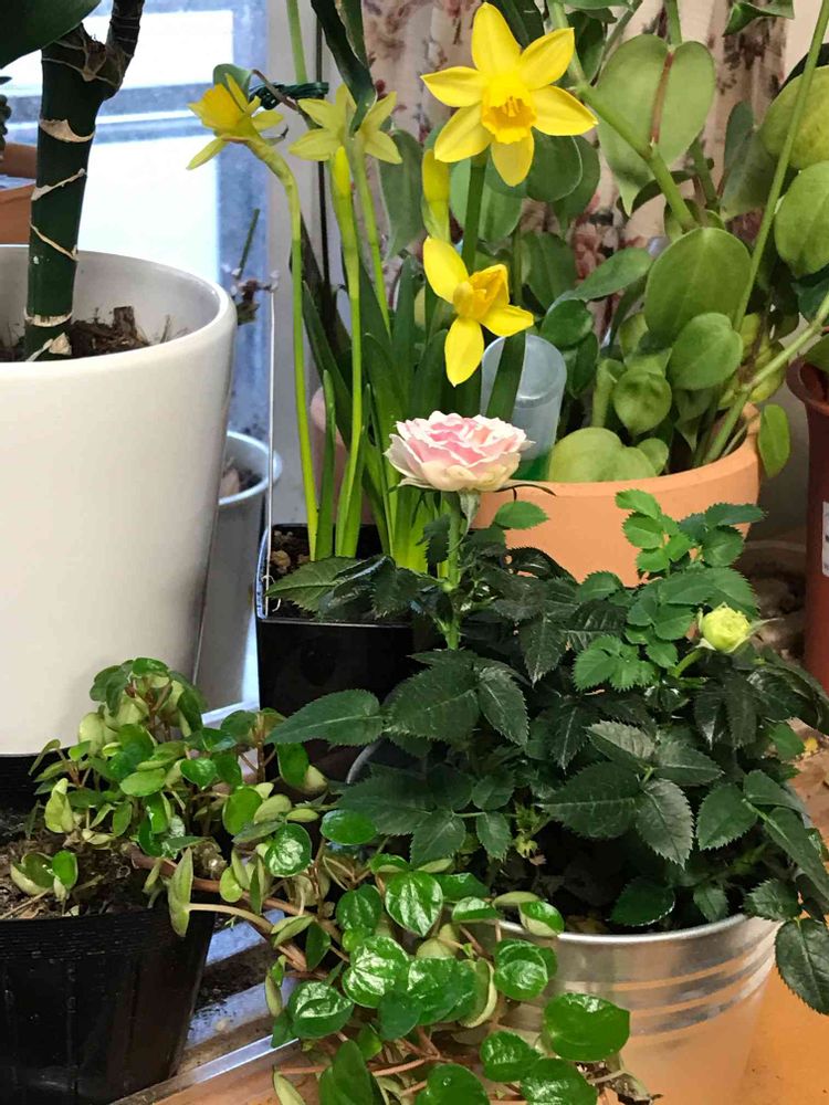 水仙の黄色が、緑たちに光りを注いでいるみたいです(◡‿◡ฺ✿) 今日も元気で✌️