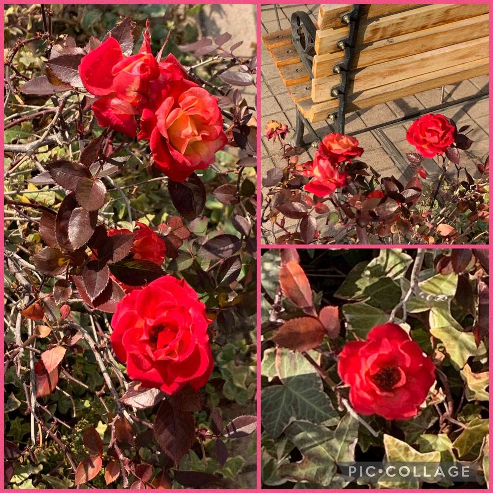 赤いバラは 寒さを忘れさせてくれますね🌹 葉っぱも紅葉するんですね👌 アイビーは地植えは変化ないですが ハンギングのは 茶色くなってます🍀